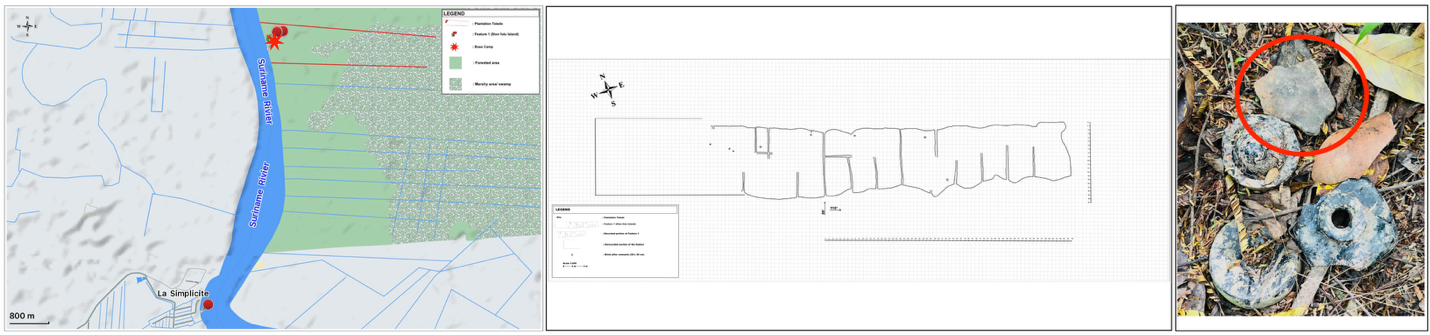 During a field visit at Plantation Toledo, situated on the right bank of the Suriname River, the researcher identified a low fired ceramic sherd on the surface of Feature 1, previously known as the Ston futu island (Figure 1). Even though the site had a decent representation of all typical historic artifacts known in Suriname, this particular find was noteworthy since empirical data indicates that these types of potteries were manufactured locally. What makes this find particularly compelling is its direct connection to Afro-Surinamese cultural traditions, by which women draw on generations of traditional knowledge. This suggests that this sherd might originate either from Toledo itself or from nearby plantations in the surrounding landscape.