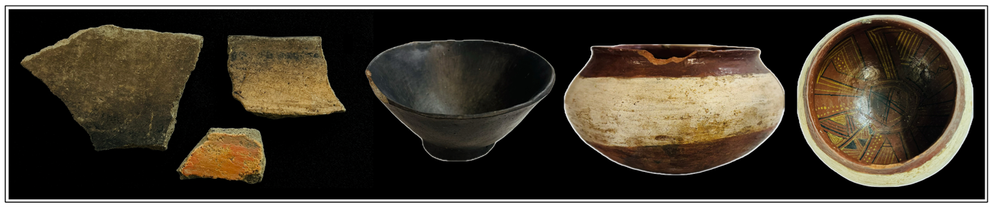 Figure 2: examples of undecorated and decorated sherds, Kali’na sherds, Maroon ceramic, and Wayana ceramic (Samson & Ganesh, 2024, p. 35; Samson, 2025, p. 46, 49).